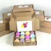 All our Bath bombs are handmade using the finest ingredients and then packaged on wood wool in a cardboard box.