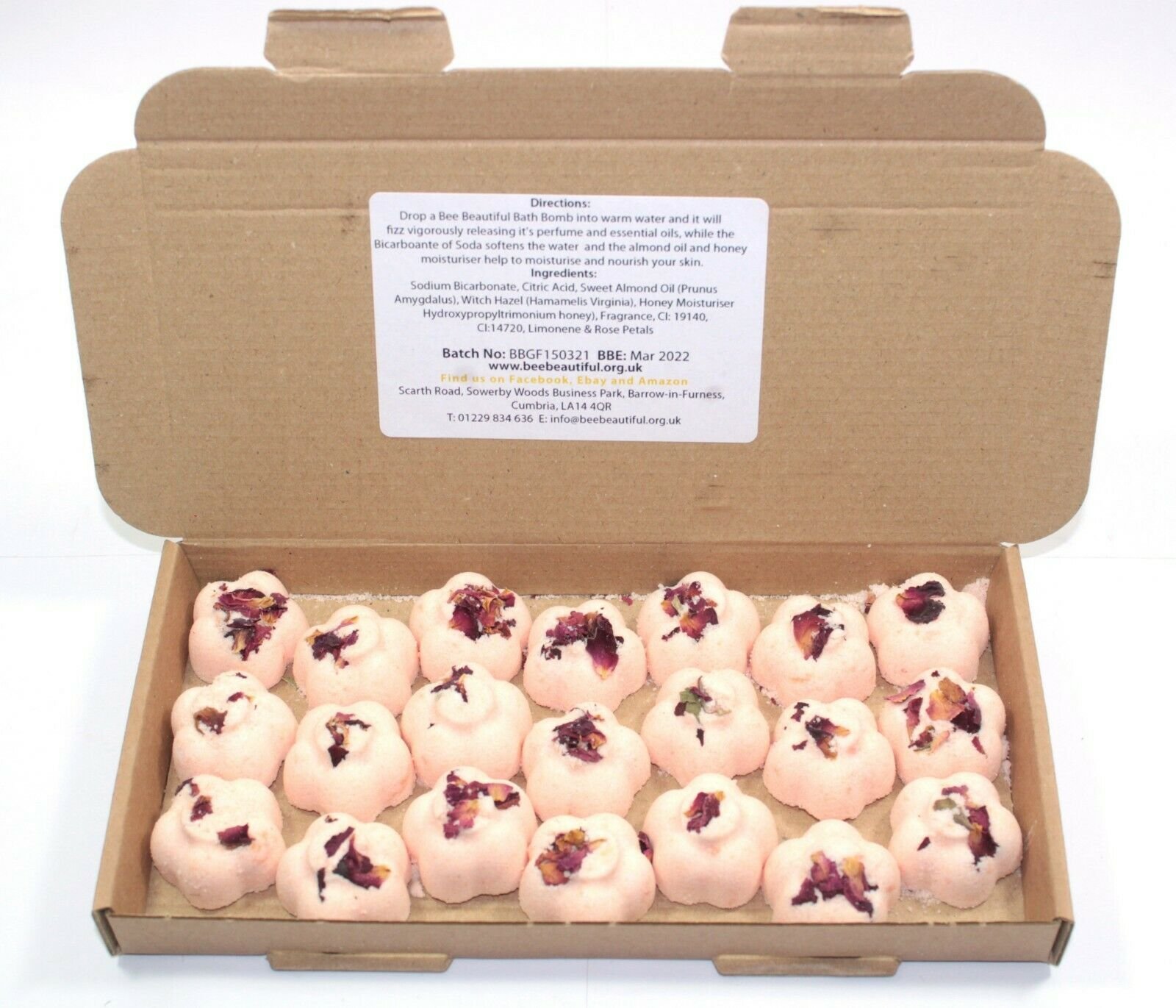 Comes in a box of 21 x 10g flower shaped bath bombs