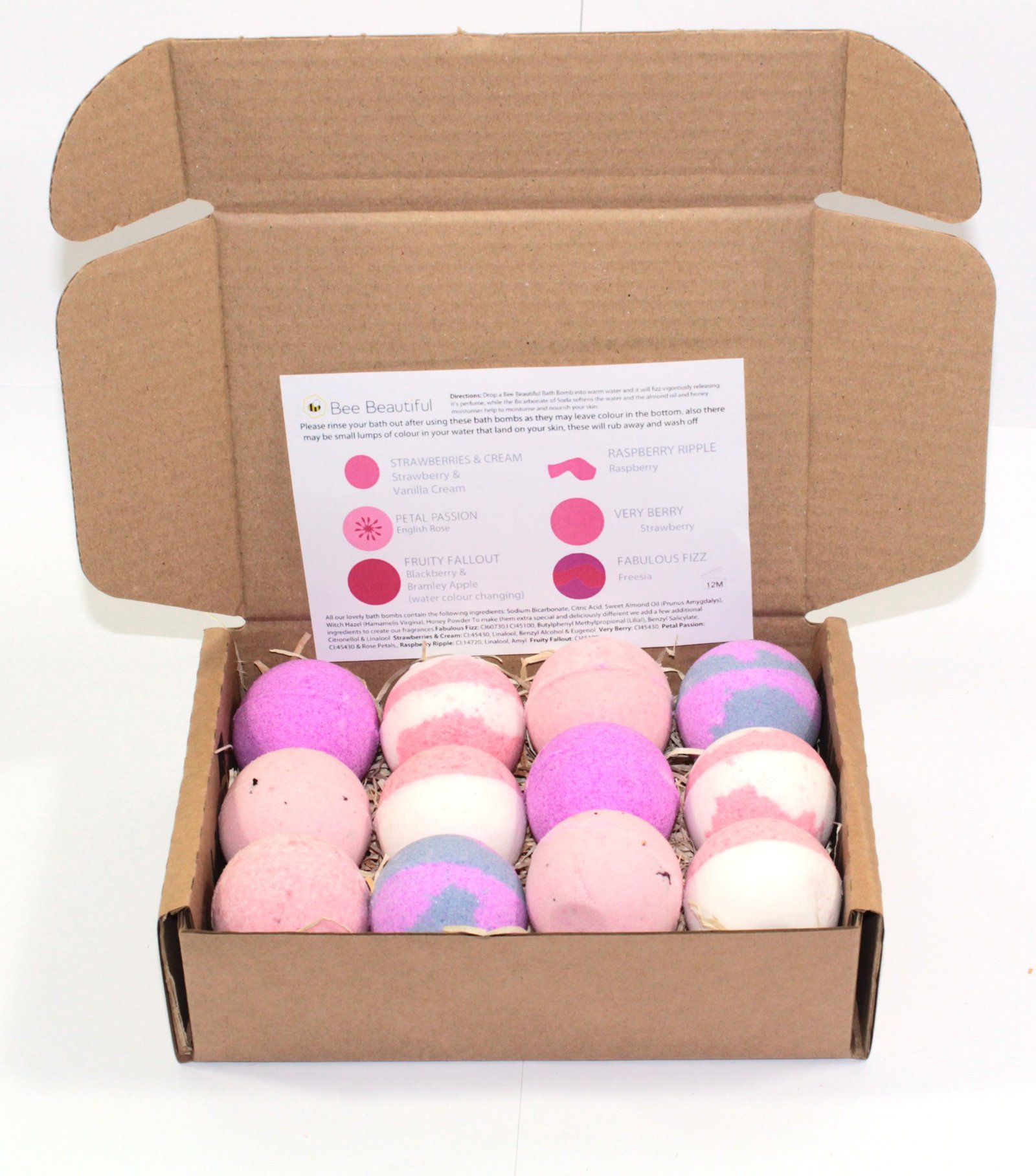 All our Bath bombs are handmade using the finest ingredients and then packaged on wood wool in a cardboard box.