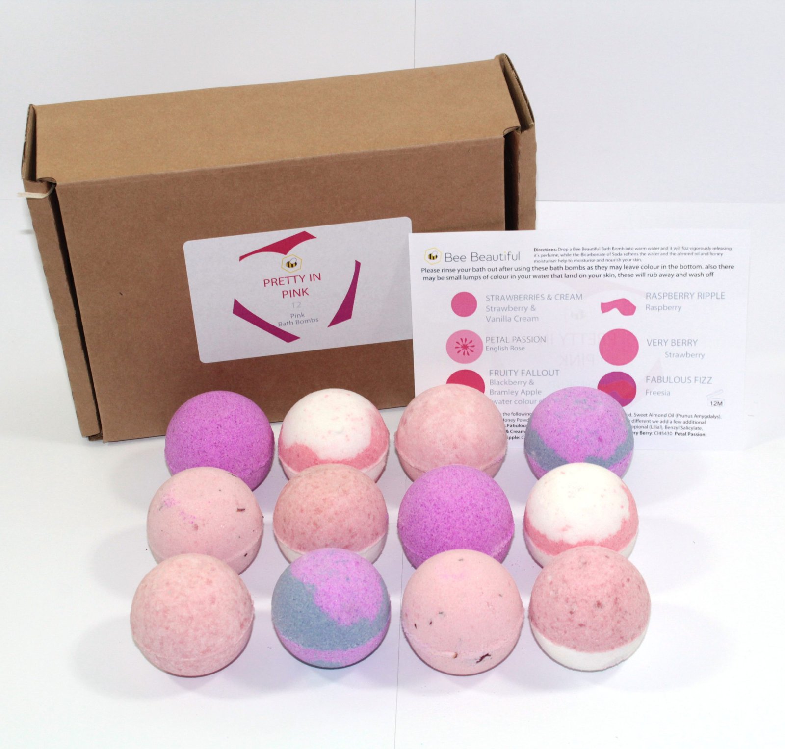 You will receive 12 x 65g bath bombs 2 of each in the following scents: