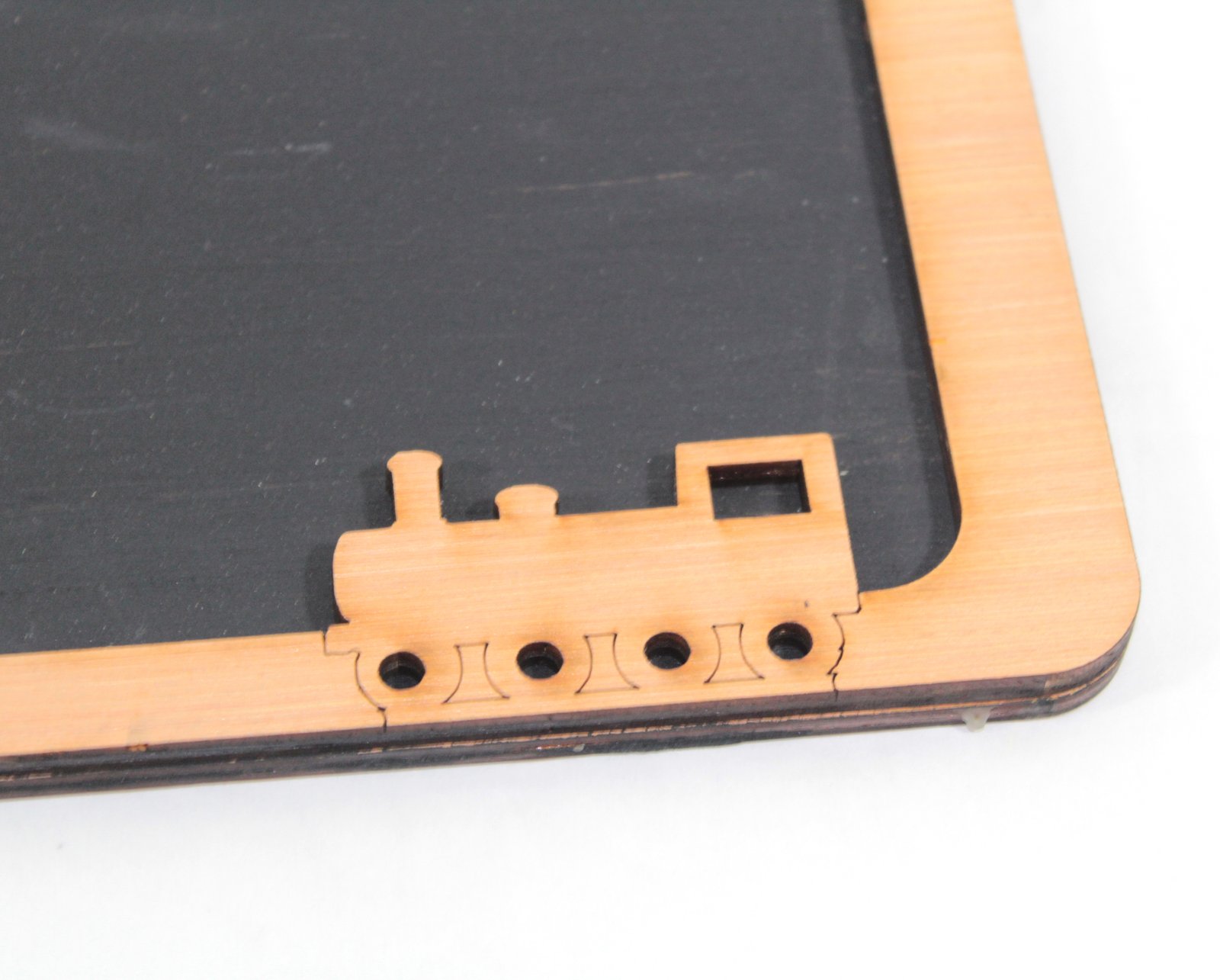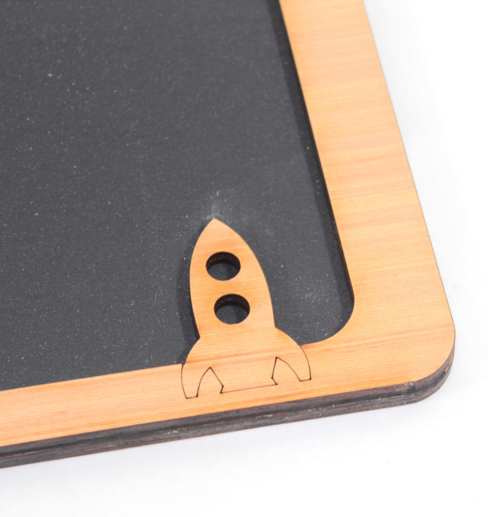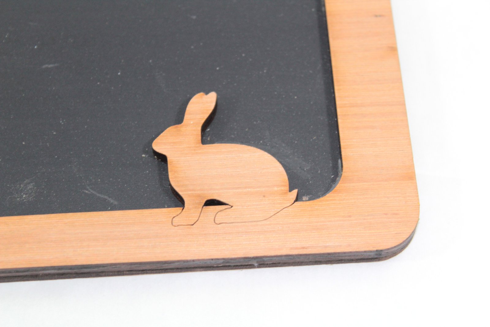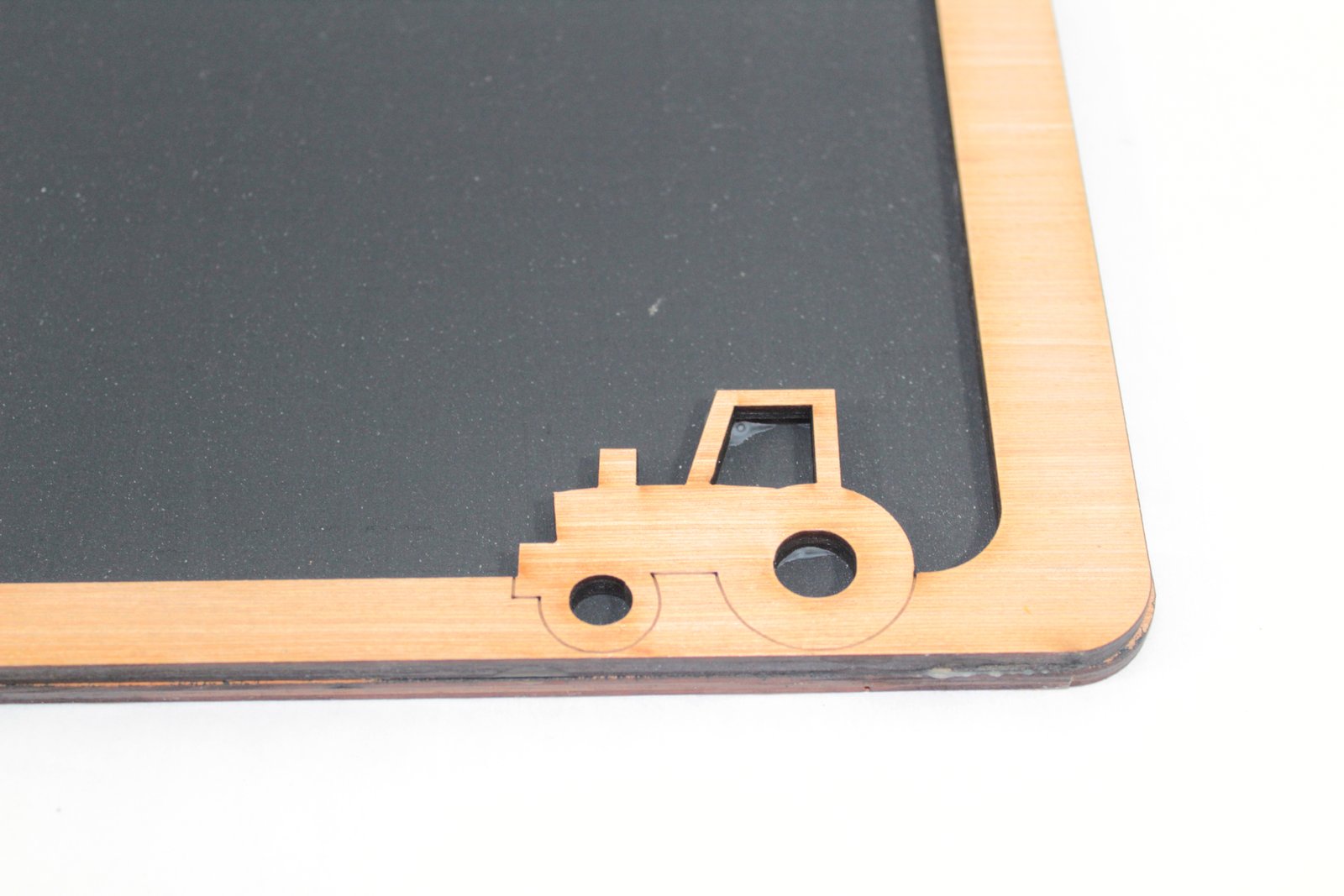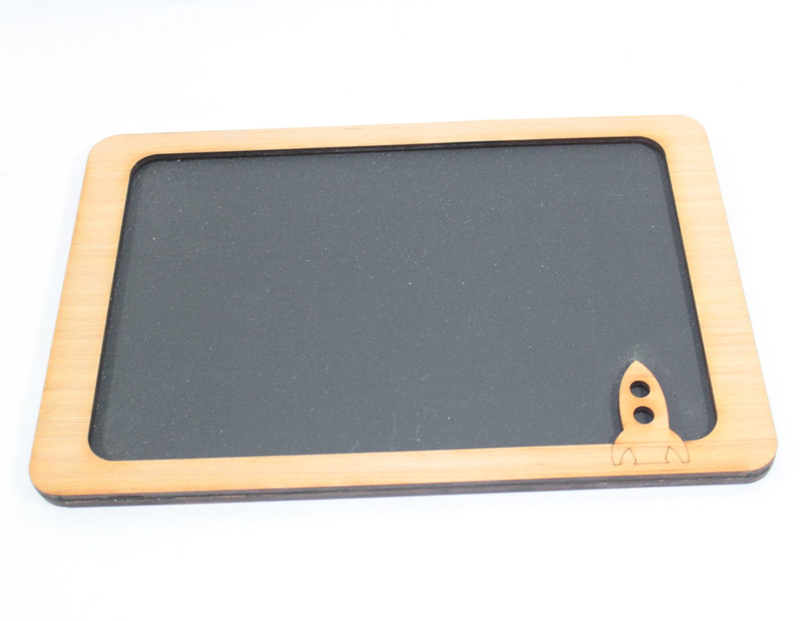 Each chalk board is laser cut in 2 pieces the black board is then painted with black chalk paint and then glued together all in our factory here in the UK.