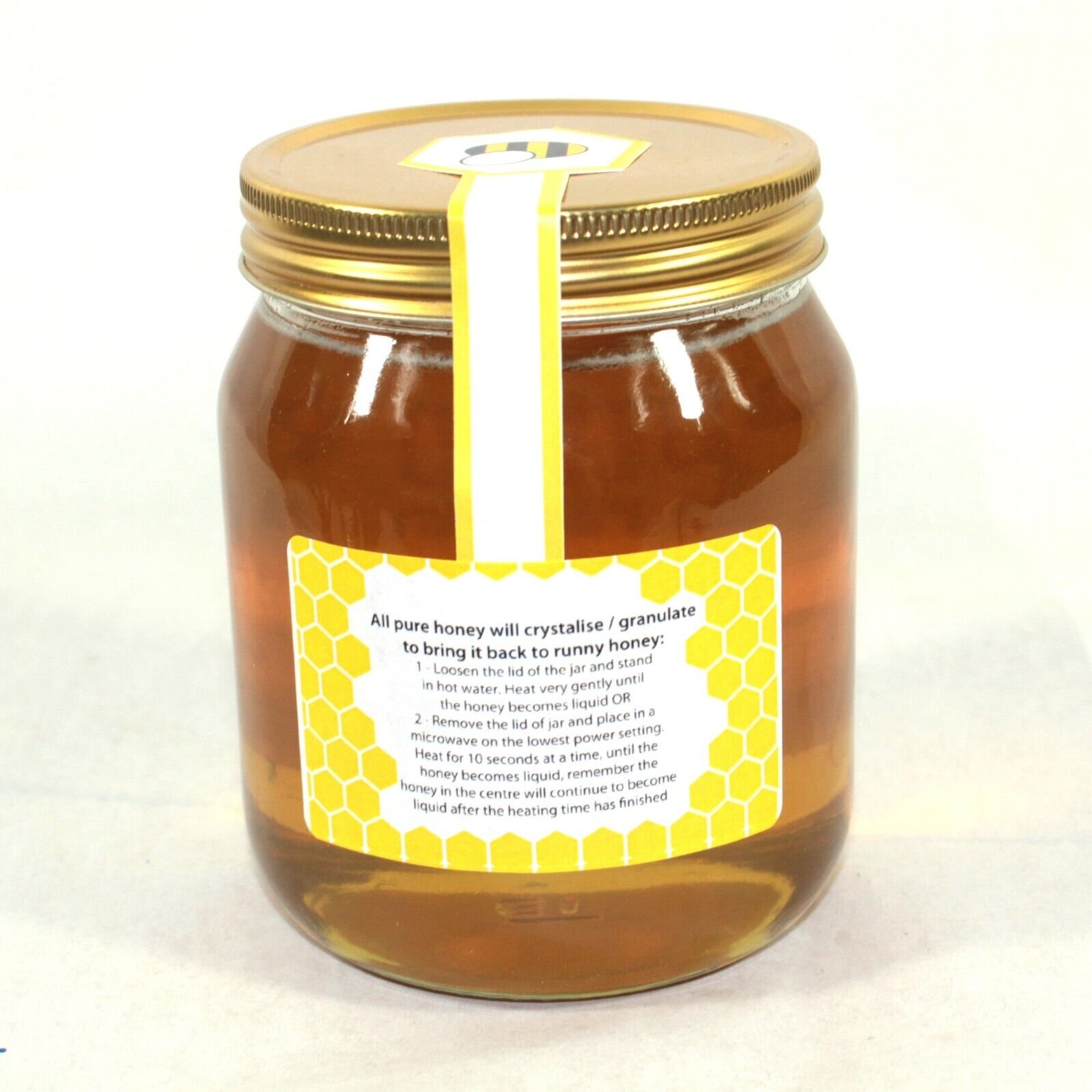 1 – Loosen the lid of the jar and stand in hot water. Heat very gently until the honey becomes liquid OR