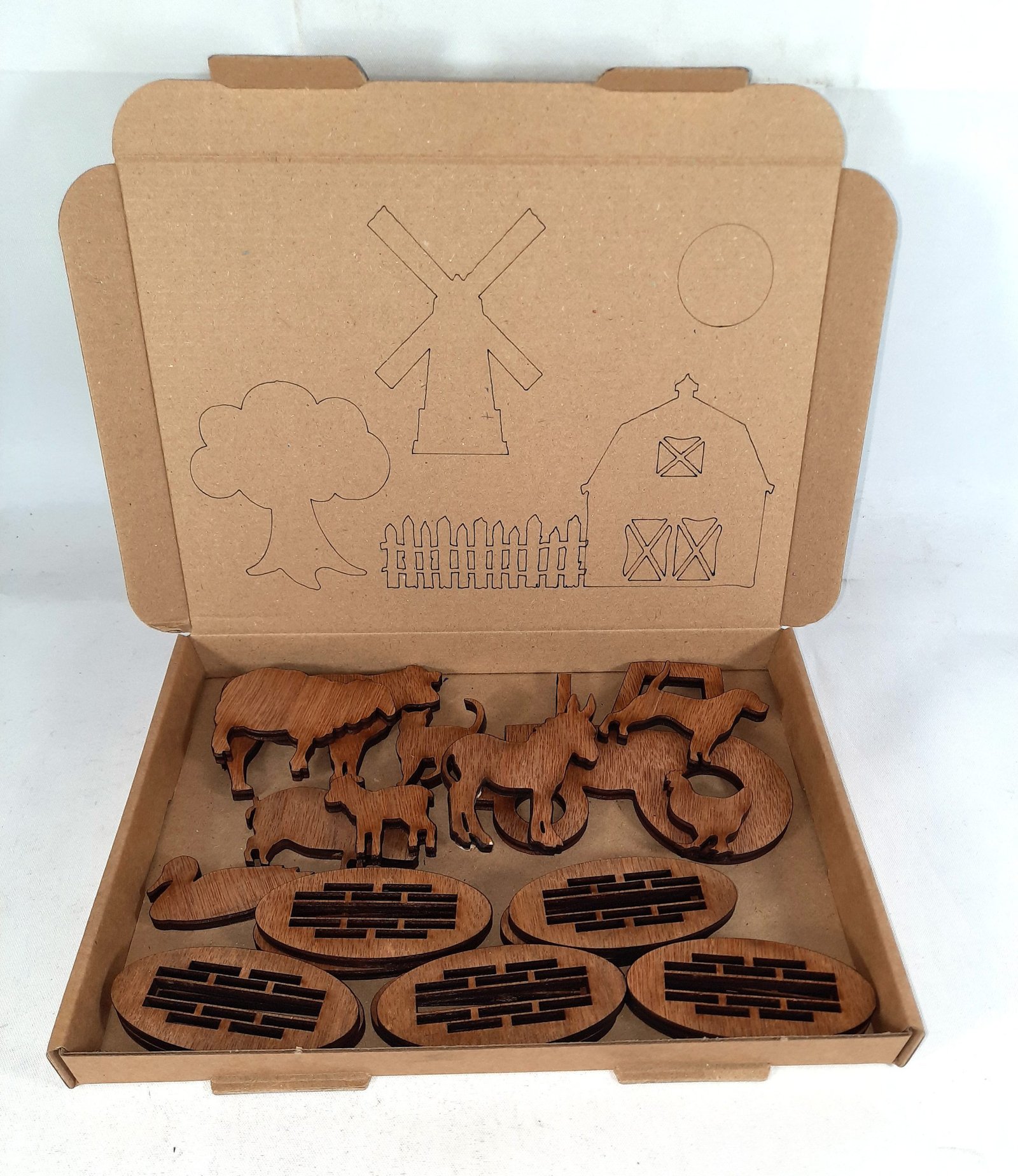 Wooden Farm Yard Playset made from 5mm plywood and boxed – paint your own