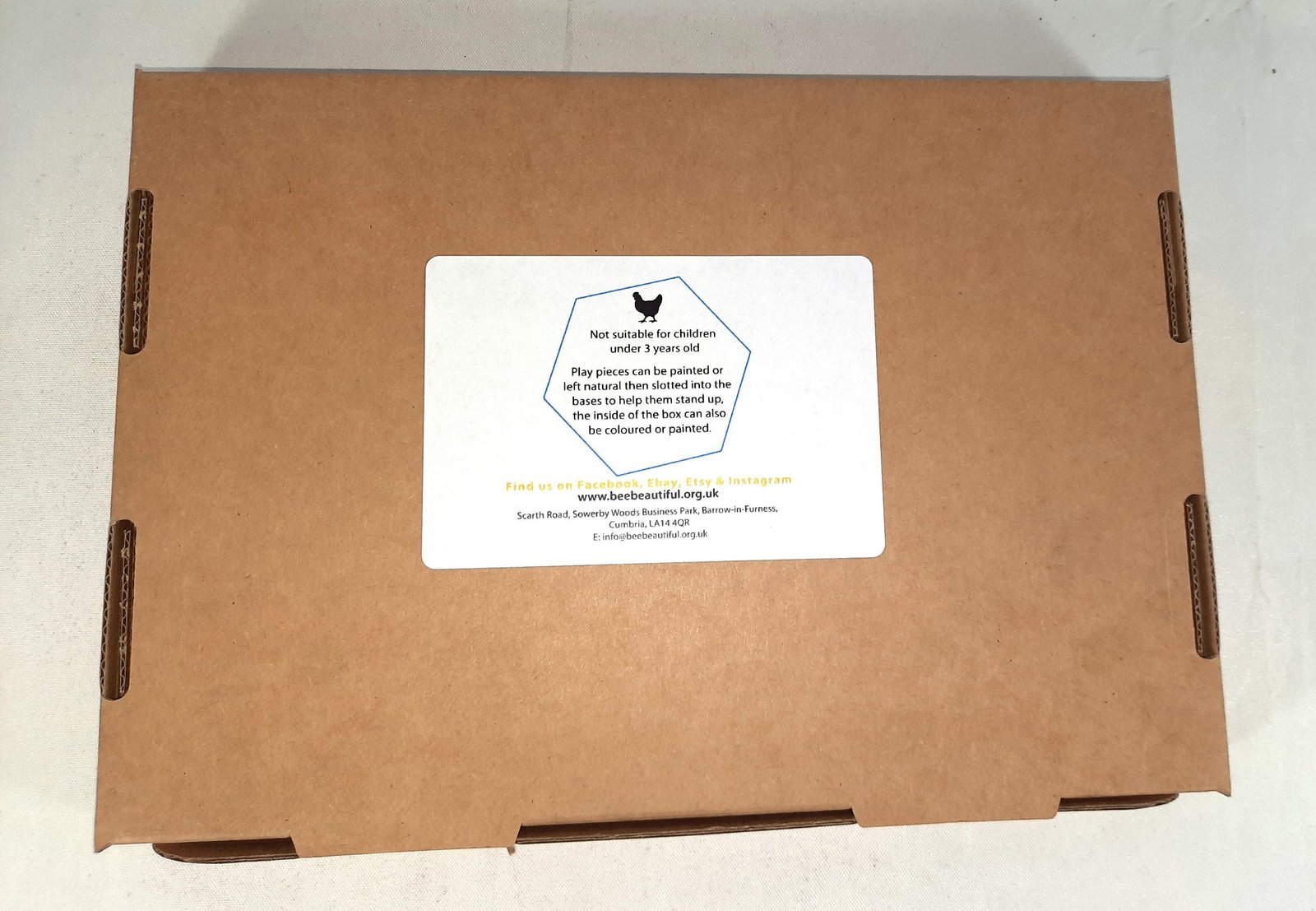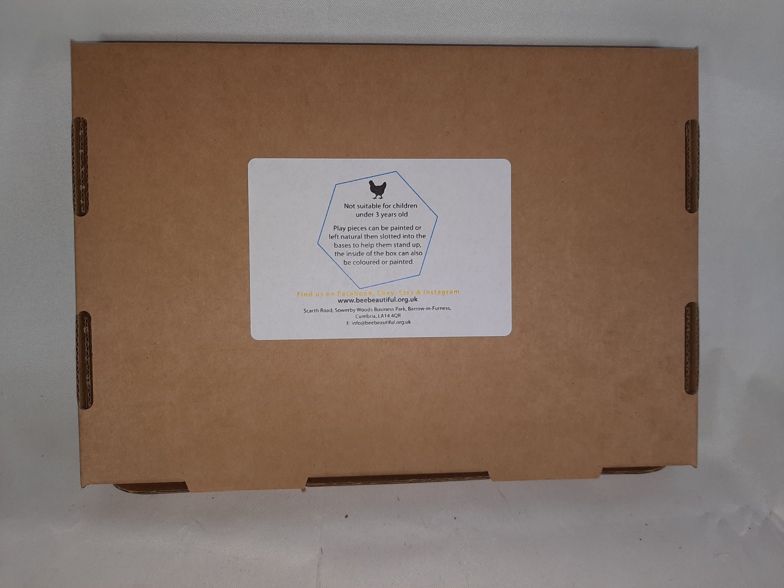 small cardboard box measuring 23cm x 17cm x 2cm.